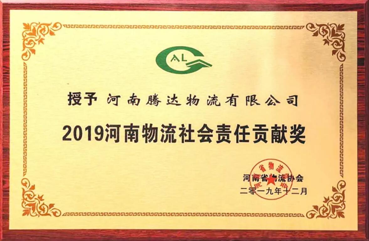 騰達物流又獲獎了!2019河南物流社會責任貢獻獎!